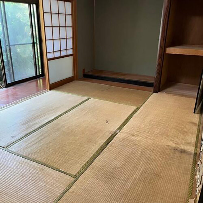 エアコンの取り外し、婚礼箪笥や水屋の搬出、庭のヨドコウ物置の解体やその中身の撤去、木製のフェンス、コンクリートブロックの撤去、以前営まれていたご商売関係の業務用冷蔵庫や什器類、看板などを撤去、片付けとお住まい全体の清掃を行いました。